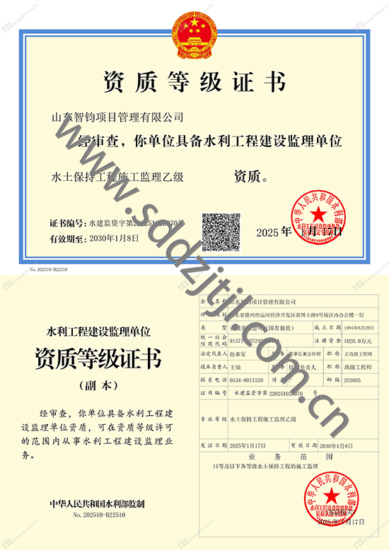 水利部水利工程施工監(jiān)理乙級(jí)和水、土保持工程施工監(jiān)理乙級(jí)資質(zhì)