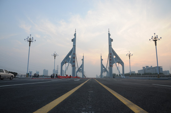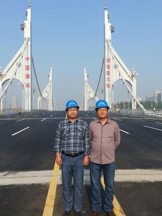 山東省德州市交通工程監(jiān)理公司承監(jiān)的聊城市湖南路大橋全長(zhǎng)316.86米,橋梁總寬51.5米;主橋采用雙索面無(wú)背鎖斜拉橋,引橋采用預(yù)應(yīng)力混凝土簡(jiǎn)支組合箱梁。本項(xiàng)目于2015年5月1日正式通車(chē)運(yùn)營(yíng),總監(jiān)理工程師陳剛和安全監(jiān)理工程師武俊參加了通車(chē)剪彩儀式 。
