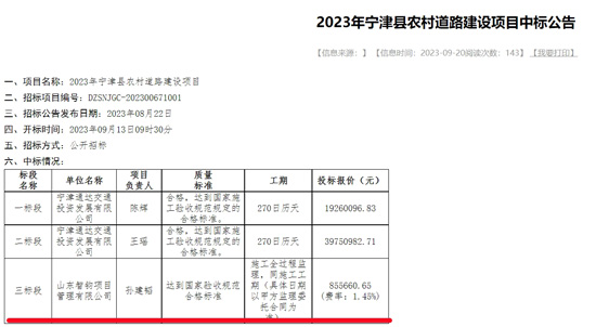 近日,智鈞項管公司連續(xù)中標(biāo)2023年寧津縣城建計劃道路項目與2023年寧津縣農(nóng)村道路建設(shè)項目。
